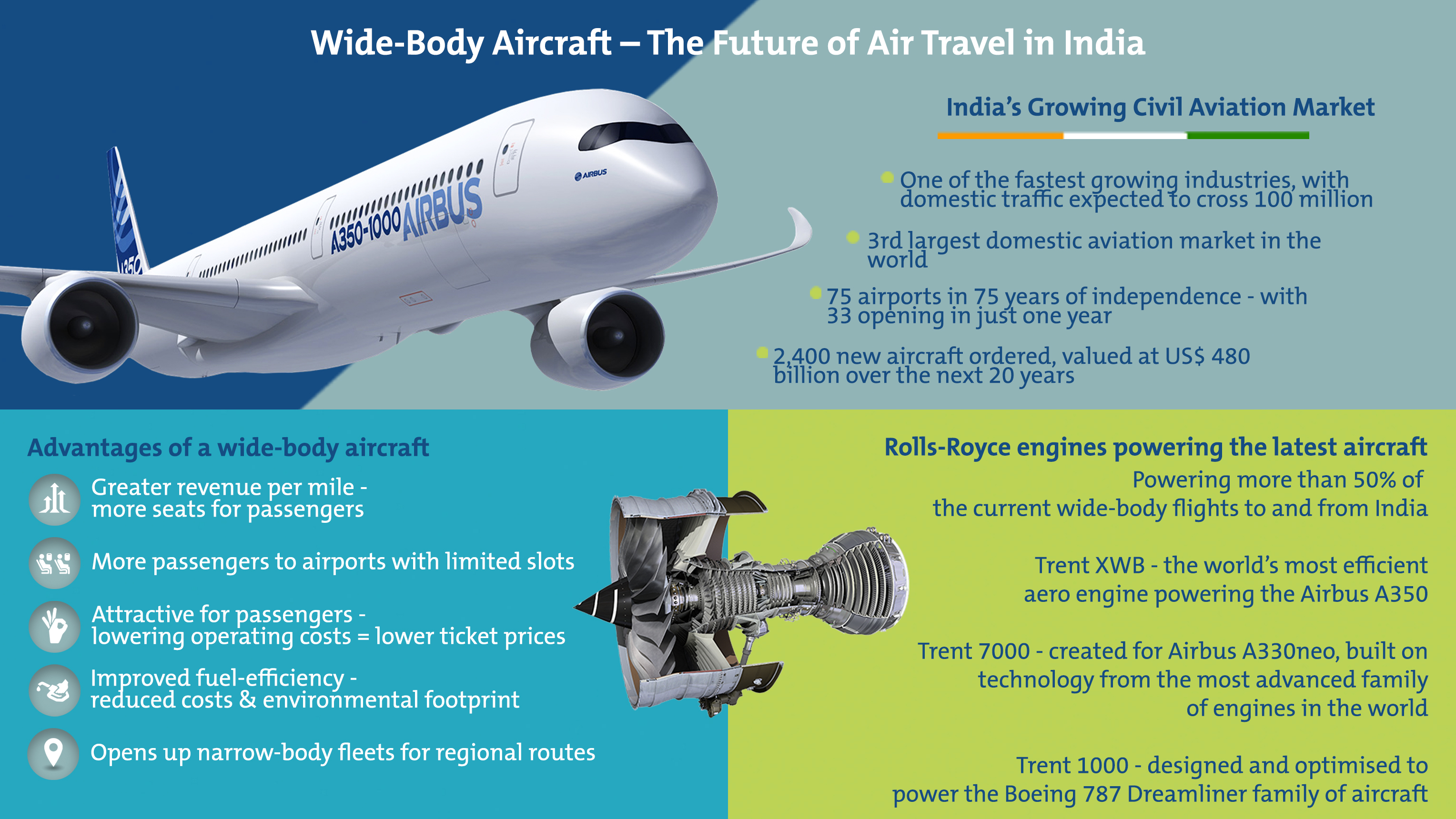 These trends make it evident that the aviation sector will grow steadily in the coming years. Airlines could reap the benefits from the opportunities presented by the sector’s growth by aggressively and innovatively planning the induction of wide-bodies into their fleet.