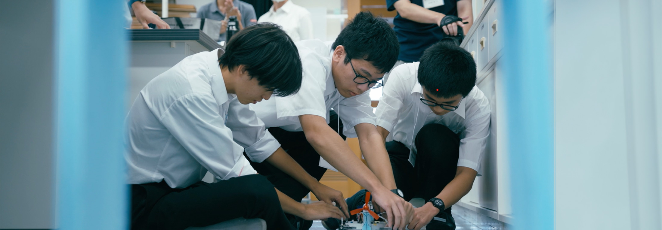 多くの応募者の中から選ばれた13校76名の高校生が6月のオンライン予選に参加し、そこで勝ち残ったファイナリストが、8月21-22日に岐阜県立岐阜高等学校での決勝大会に臨みました。2日間にわたる決勝大会のプログラムでは、まず初日に4校26名の学生が、約3か月にわたり開発し自動制御をプログラムした、小型ホバークラフトの性能を競い合いました。また、学生同士の交流を通じてお互いの開発から得た学びを共有したり、両社の現役エンジニアから、開発のアドバイスや業界の興味深いエピソード、エンジニアのキャリアを選んだ背景や現在の業務について聞いたりするなど、体験と座学を含む充実した1日となりました。