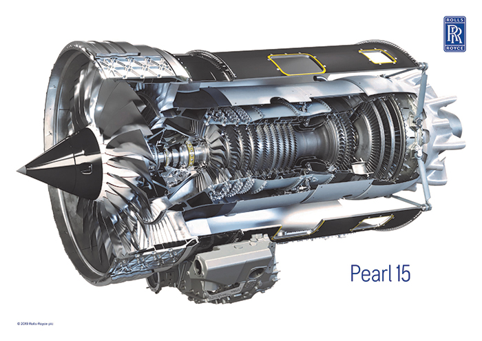펄 엔진은 롤스로이스 어드밴스2(Advance2) 기술 시험 프로그램을 통해 개발된 혁신적인 기술과 현재 비즈니스 항공 분야에서 가장 성공적인 엔진 제품군으로 평가받는 BR700의 입증된 기능이 결합되었다. 또한 펄 15 엔진은 첨단 디지털 기술을 통해 제품 및 서비스가 융합되는 롤스로이스의 선도적인 미래 전략인 인텔리전트엔진(IntelligentEngine)의 비전을 보여주는 사례이다. 이 엔진은 첨단 진동감지 기능을 도입한 차세대 엔진 상태 모니터링 시스템은 물론, 첨단 원격 엔진 진단 및 양방향 통신 기능을 갖추고 있어 지상에서 엔진 모니터링 기능을 원격으로 손쉽게 재구성할 수 있다.