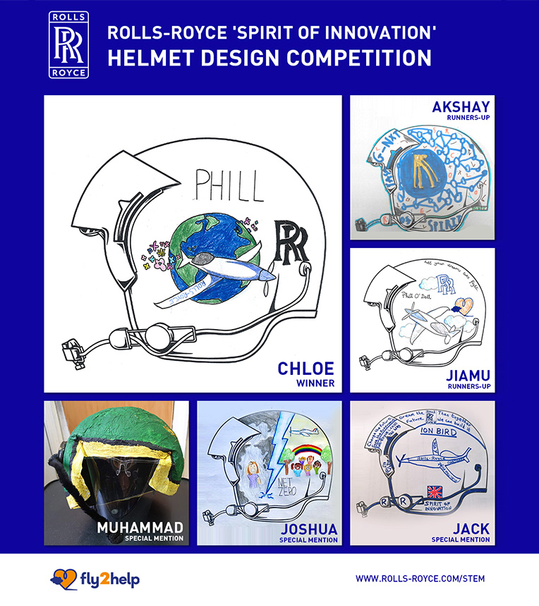 Charity Manager, fly2help, Sharon Walters said: “It has been fantastic supporting the Rolls-Royce ‘Design a Helmet’ competition and it was incredibly hard to pick the winning entries. We hope the all-electric world-record attempt will continue to demonstrate the exciting opportunities in aviation which is a key aim of fly2help as we look to encourage children’s future career ambitions.”