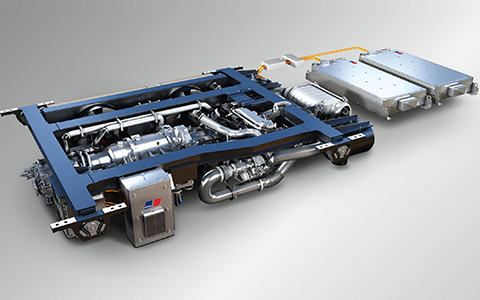 MTU‘s Hybrid PowerPack is an environmentally-friendly drive system that combines the benefits of both battery and diesel-powered trains. It is made up of an MTU diesel engine combined with an electric machine, which can be used as both a traction motor and a generator, and the MTU EnergyPack battery system, which stores the energy recovered during braking. As a result, local emission free, battery-powered operation, among other things, is possible. In station areas, the drive‘s noise level is reduced by around 75 per cent (20 dB(A)), with fuel consumption and CO2 emissions down by as much as 25 per cent, depending on the vehicle, route and timetable. The operating costs of vehicles equipped with a hybrid drive system are significantly lower, because the pneumatic brakes, for example, are not used as frequently, since energy is recovered during braking. As a result of the increased acceleration and additional power of the electric drive system, it is possible to make up for delays and to schedule rail services with shorter intervals between trains or additional stops.