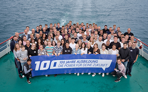 No less than 230 former and new apprentices, instructors and invited guests sailed off together into the start of the next 100 years of training. “This surprise event is an expression of thanks to the young people who worked mainly behind the scenes at previous events and this time take centre stage,” said Deputy Chairman of the Works Council, Achim Zinser, paying tribute to the highly motivated apprentices.