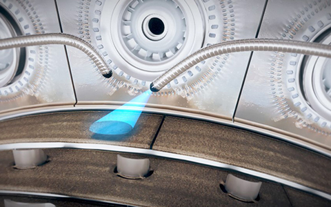 Snake robot programmes are also making great progress. The FLARE programme involves a pair of snake robots travelling through the engine like an endoscope before carrying out patch repairs to damaged thermal barrier coatings, without having to take the engine off wing. This year, engineers have set a world first, successfully testing a material addition repair technology on a real engine in a laboratory for the first time. The programme is a partnership with the University of Nottingham and Metallisation.