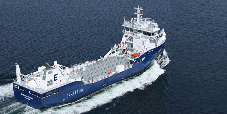 The Eidsvaag Pioner was the first of the Environship vessel design concept from Rolls-Royce, introducing innovative energy saving and emission reducing technologies.