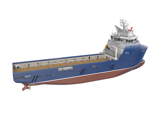 Medium-sized platform supply vessel delivering excellent sea-keeping for medium to long passages