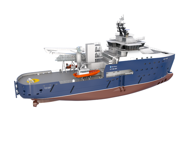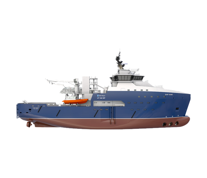 The UT 540 WP is a mid-range wind farm support vessel with a flexible design to meet the needs of specific farms, regions and operators. The UT 540 WP is equipped for accurate station keeping and sensitive manoeuvring in strong winds, currents and sizeable waves, with a transit speed of around 13knots. The UT 540 WP meets Special Purpose Ship rules with accommodation for 40 wind-turbine technicians plus a ship’s crew of 20. The propulsion system is diesel-electric for maximum flexibility with minimum fuel consumption. Great attention has been paid to minimising noise and vibration in the accommodation.