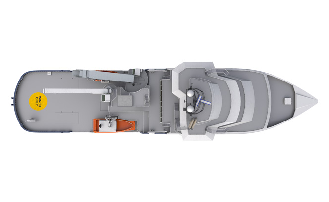 Meets special purpose ship rules with accommodation for 40 wind-turbine technicians plus a ship’s crew of 20